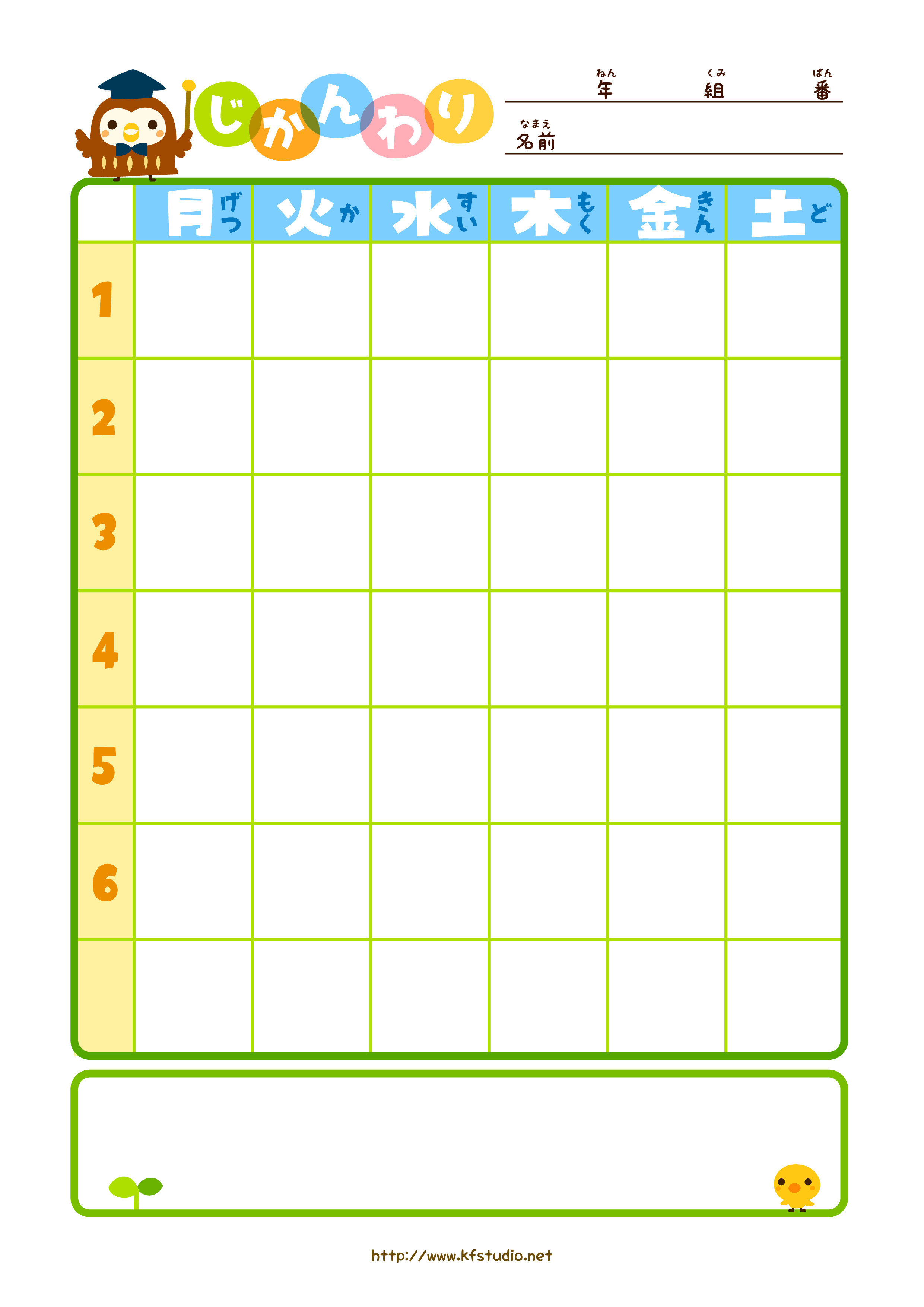 ランドセルに入れられる小さめの時間割表もあります。