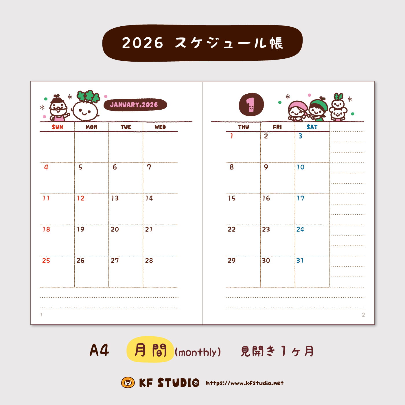 “2026年スケジュール帳・月間(A4)” をダウンロード   kfmonthly2026A4.pdf – 1.31 MB