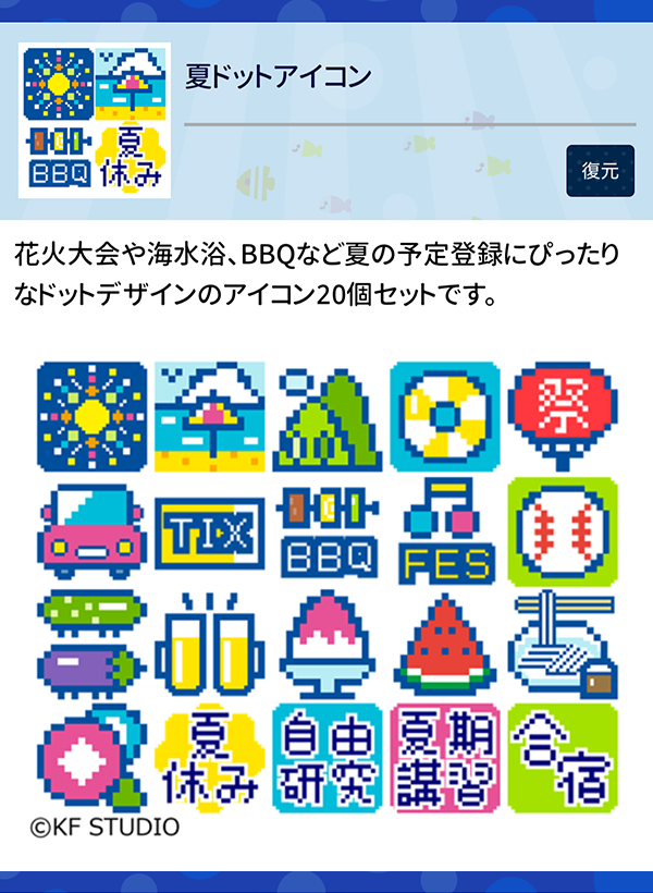 システム手帳/カレンダーアプリで人気の「ジョルテ」様から、KF STUDIOオリジナルコンテンツとして「アイコン」と「きせかえ(全チェン)」を配信していただいています。
